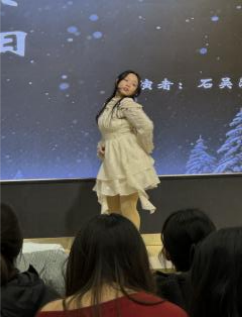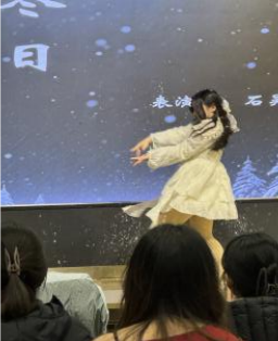 雪花翩跹起舞,裹挟着冬日独有的清冽与诗意降临人间。此刻,同学们放下纷扰,一同踏入这片晶莹剔透的冬韵天地,静静欣赏石吴萍同学带来的舞蹈《冬日》,于灵动轻盈的舞步间,邂逅冬日里最纯粹的浪漫与美好。